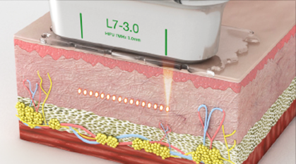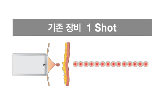 FACE ) 3mm 진피중부층에 열응고점 형성하여 피부 전반적인 탄력 개선을 도와줍니다.