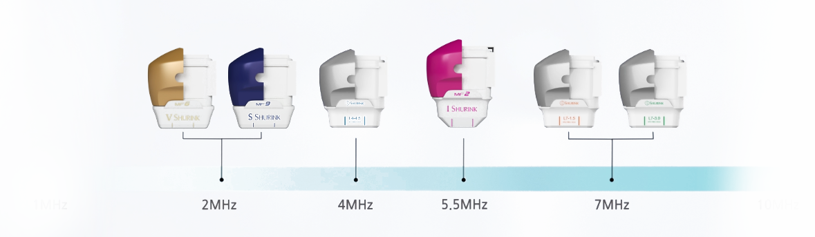 다양한 카트리지를 이용하여 각기 다른 깊이의 피하조직층에 정확히 집중시키기 때문에 얇은 피부층에도 효과적인 탄력 개선 효과를 기대할 수 있습니다.