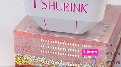 피부 속 1.5 ~ 4.5mm 깊이에 정확하고 강력한 초음파 에너지를 집속하여 노화로 인해 탄력이 떨어진 피부층과 SMAS(피부 근막)층을 개선해줍니다. 시술 시간이 비교적 짧고 피부 손상이 거의 없어 일상에 지장 없이 시술이 가능하다는 장점이 있습니다.