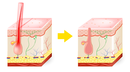 굵고 얇은 털, 굵기에 따라알맞은 제모를 하여 보다 효과적입니다.